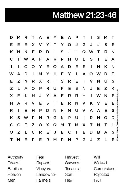 Free Bible Word Search – Matthew 21:23-46 Authority, Obedience, and the Cornerstone We Can’t Ignore (Downloadable jpg)
